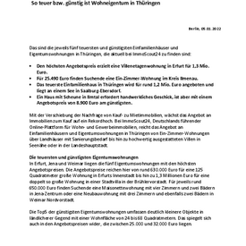 - Den höchsten Angebotspreis erzielt eine Villenetagenwohnung in Erfurt für 1,3 Mio. Euro.