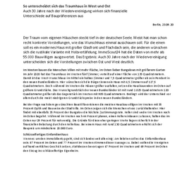 Auch 30 Jahre nach der Wiedervereinigung wirken sich finanzielle Unterschiede auf Baupräferenzen aus