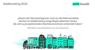 Das gesamte Städteranking finden Sie hier: https://www.immobilienscout24.de/unternehmen/news-medien/news/default-title/staedteranking-2020-der-grosse-staedtetest-deutschlands/. Auf Wunsch schicken wir Ihnen auch gerne einzelne Factsheets der von Ihnen gewünschten Städte zu.