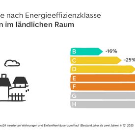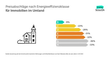 Ländlicher Raum: Für Immobilien mit Energieeffizienzklasse F, G und H fallen die Angebotspreise 41 bis 51 Prozent günstiger aus als für Immobilien mit Energieklasse A.