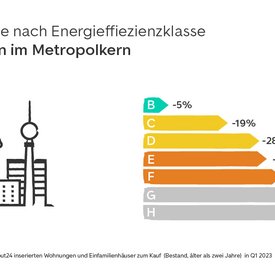 Die Auswertung betrachtet Wohnungen und Einfamilienhäuser, die älter als zwei Jahre sind (Bestand) und die im ersten Quartal 2023 bei ImmoScout24 zum Kauf angeboten wurden. Zudem flossen nur Angebote mit mindestens 70 Quadratmeter Wohnfläche, einem sinnvollen Angebotspreis sowie mit der Angabe von Baujahr und Energiekennwert in die Auswertung ein.