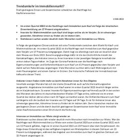 - Im ersten Quartal 2022 ist die Nachfrage nach Immobilien zum Kauf als Folge der drastischen Zinsentwicklung um 17 Prozent eingebrochen.
