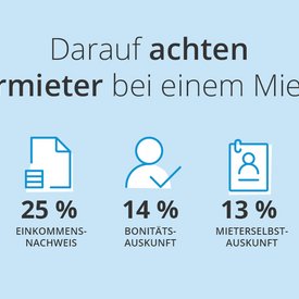Für 44 Prozent der privat inserierenden Vermieter zählt bei der Auswahl der Mieter vor allem der persönliche Eindruck. Die Kommunikation und das Auftreten beim Besichtigungstermin scheinen damit für den größten Teil der Vermieter ausschlaggebend zu sein. Nur 25 Prozent der Befragten achten vor allem auf den Einkommensnachweis. Für 14 Prozent sind die Bonitätsauskunft und für 13 Prozent die Mieterselbstauskunft die entscheidenden Kriterien. Lediglich vier Prozent der Befragten achten bei der Auswahl ihrer Mieter primär auf die Mietzahlungsbestätigung. Das sind Ergebnisse einer Umfrage unter privaten Vermietern auf ImmobilienScout24 im Zeitraum 2018/2019.