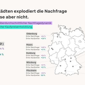- In Minden (+95 Prozent), Bottrop (+60 Prozent) und Bamberg (+55 Prozent) steigt unter den 118 B-, C- und D-Städten das Kaufinteresse seit Jahresbeginn am stärksten.