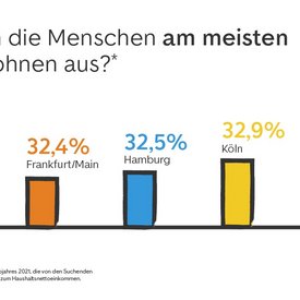 - Mieter:innen in Salzgitter, Gelsenkirchen und Jena kalkulieren mit den geringsten Wohnkostenanteil.