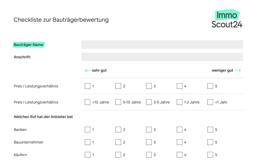 Eine detaillierte Auflistung aller Kriterien zur Bauträgerbewertung finden Sie in der Checkliste. Sie steht Ihnen kostenlos zum Download bereit.