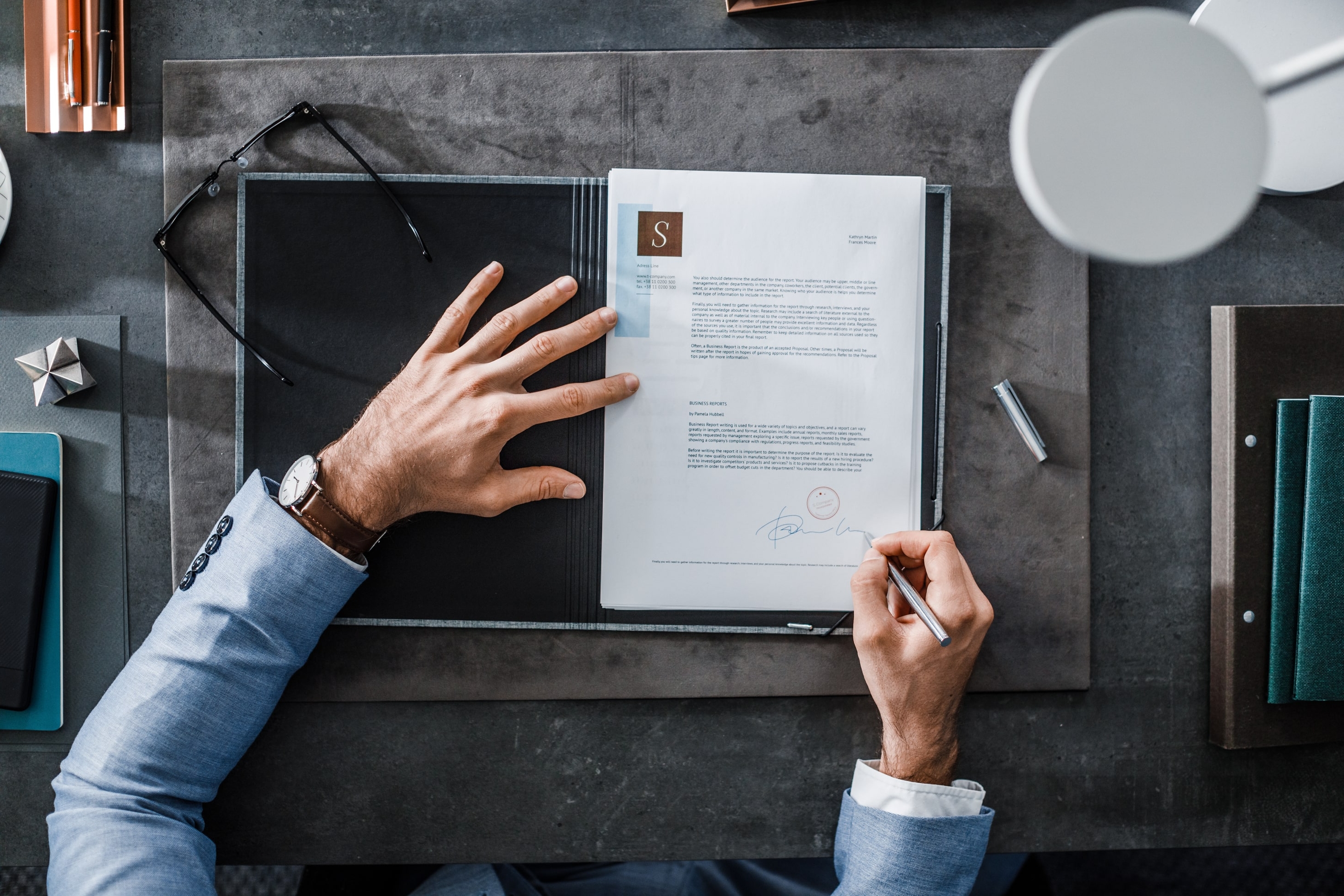 Sobald es keine Änderungswünsche mehr gibt, unterschreiben beide Parteien den Kaufvertrag, der durch Stempel und Unterschrift der Notarperson rechtskräftig wird. Sie erhalten eine Kopie des Vertrags.